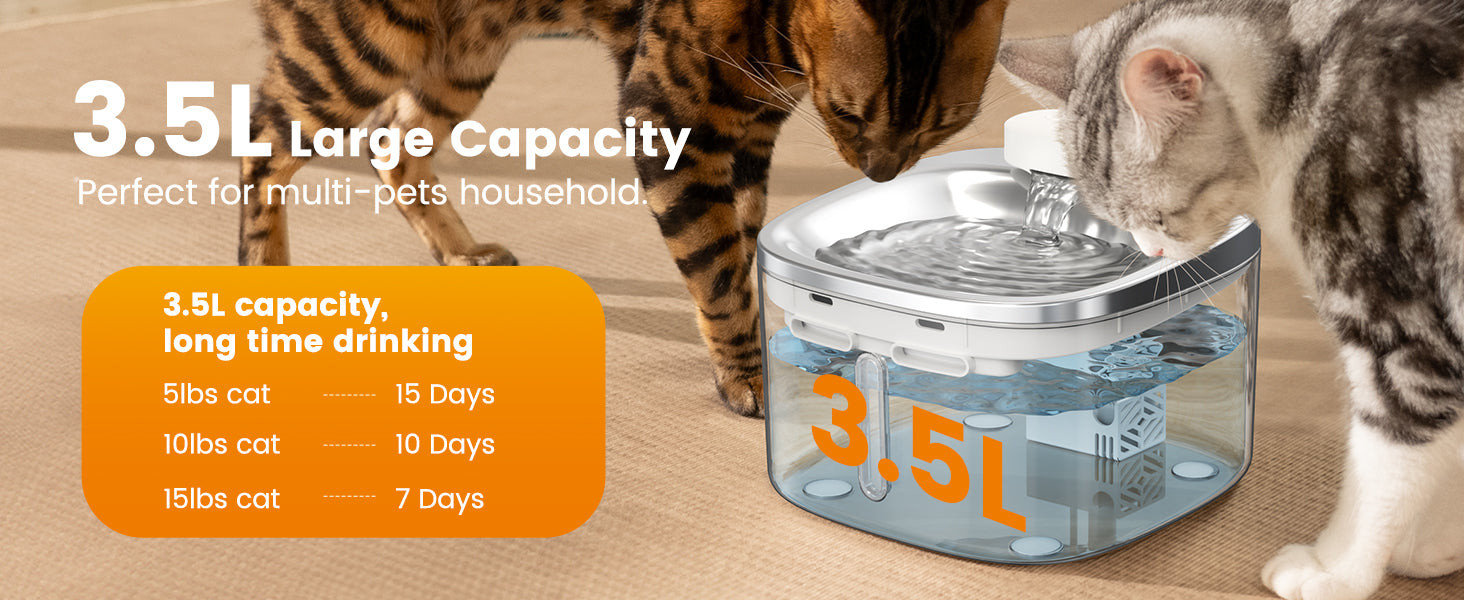 - Over time, your cats will grow comfortable with the fountain and begin drinking from it. Be patient and allow both yourself and your cats time to adapt.