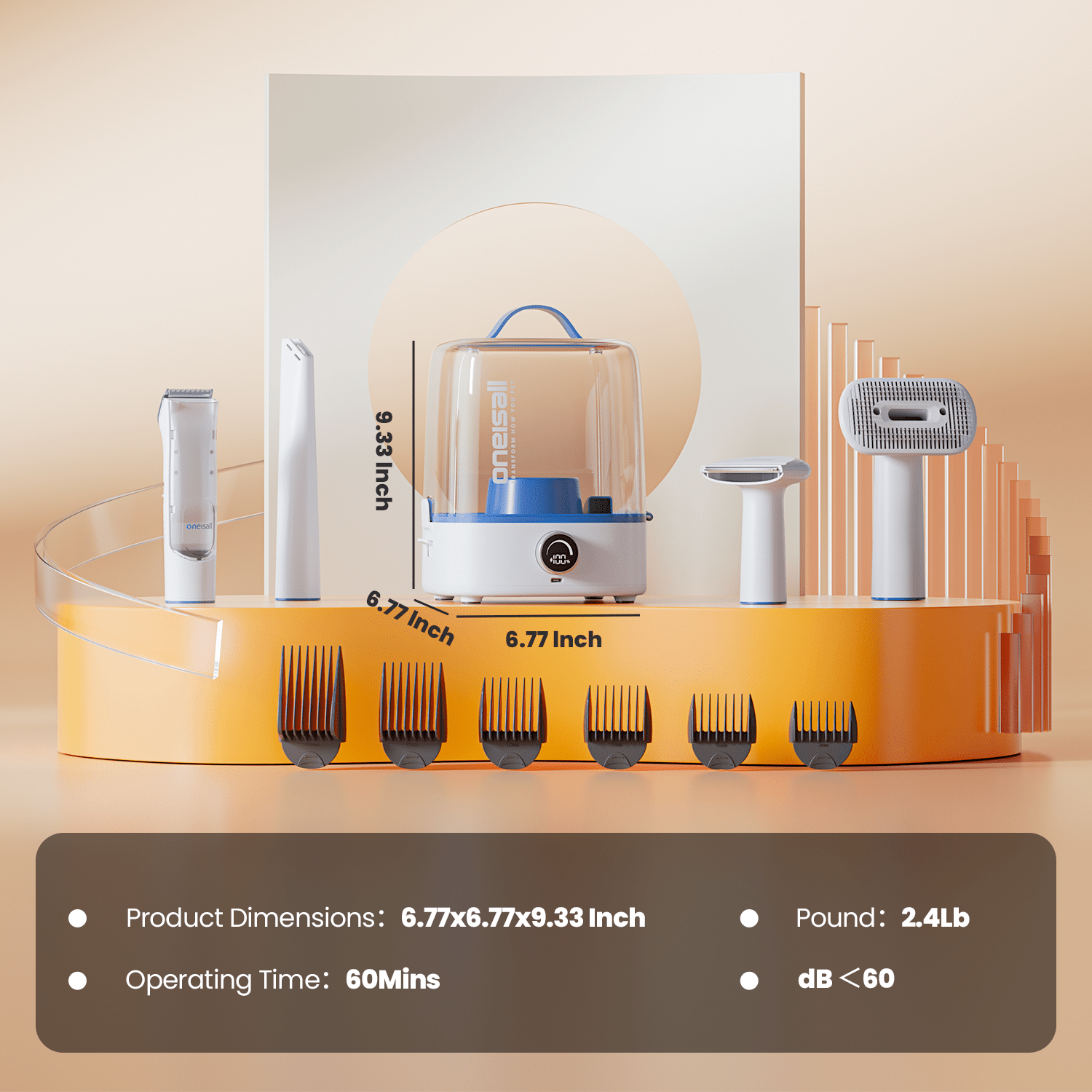 The noise of our pet grooming kits is less than 50db, it is a relatively soft sound level, similar to a calm office environment, or a low-volume televisionwhich which not scare pets.