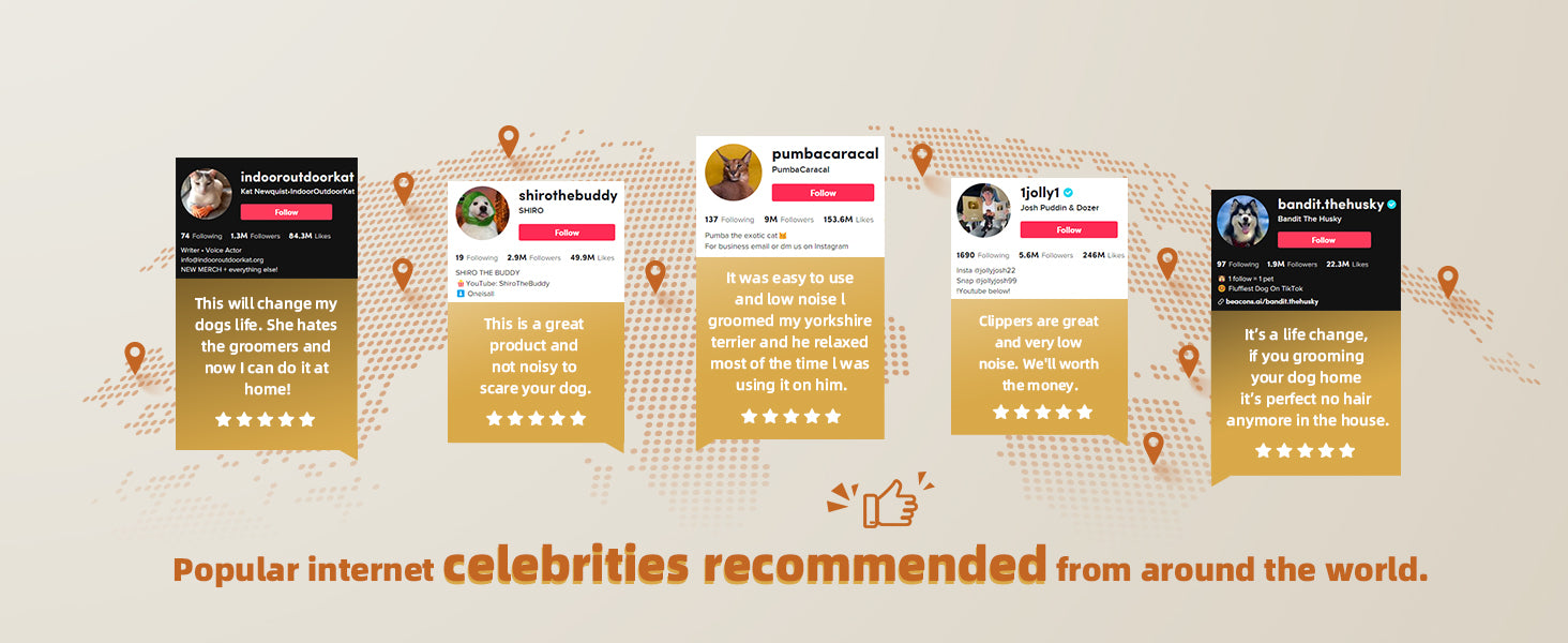 The noise of our pet grooming kits is less than 60db, it is a relatively soft sound level, similar to a calm office environment, or a low-volume televisionwhich which not scare pets.