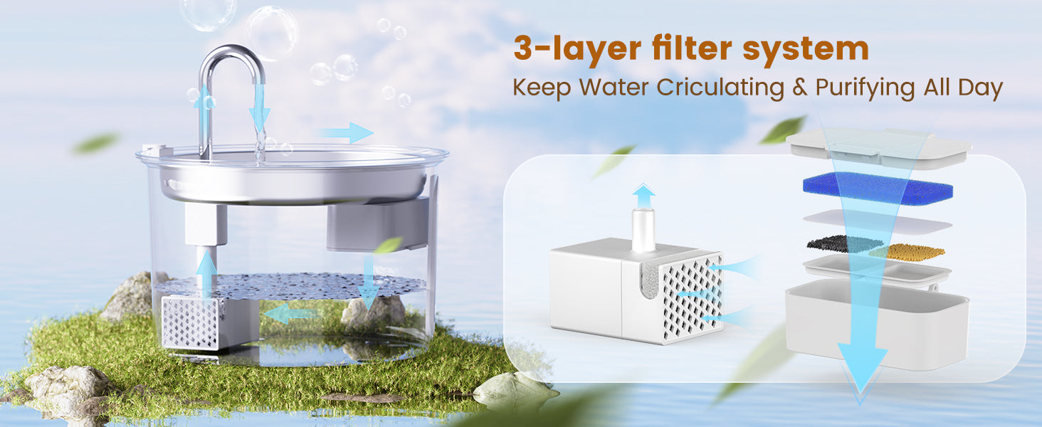 The water pump and dispenser need to be cleaned every 1–2 weeks, every2-4 weeks you need to change the cartridge, we will provide you with 2 extra sets offillters