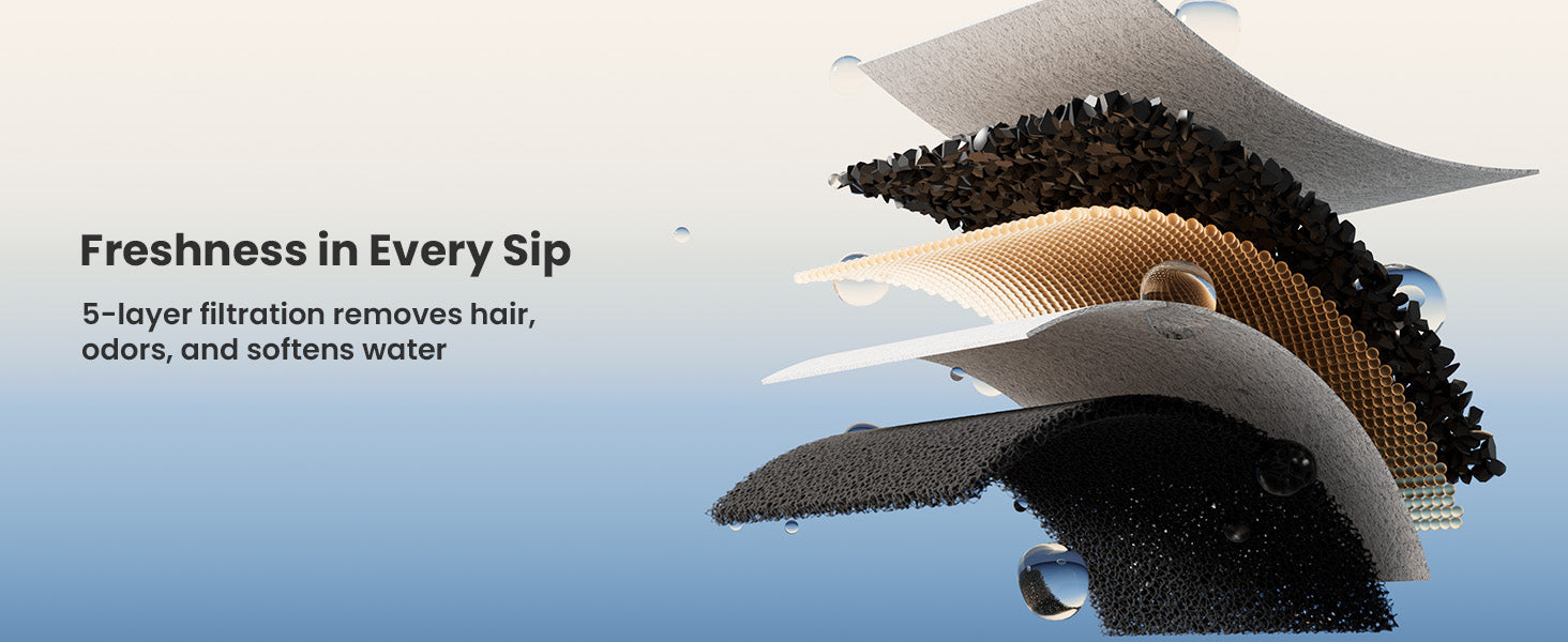 ย Filters help remove impurities, hair, food particles, and other debris from the water, keeping it clean and safe for your pet. Many filters also have activated charcoal to help reduce odor and improve the taste of the water, which can encourage your pet to drink more.ย