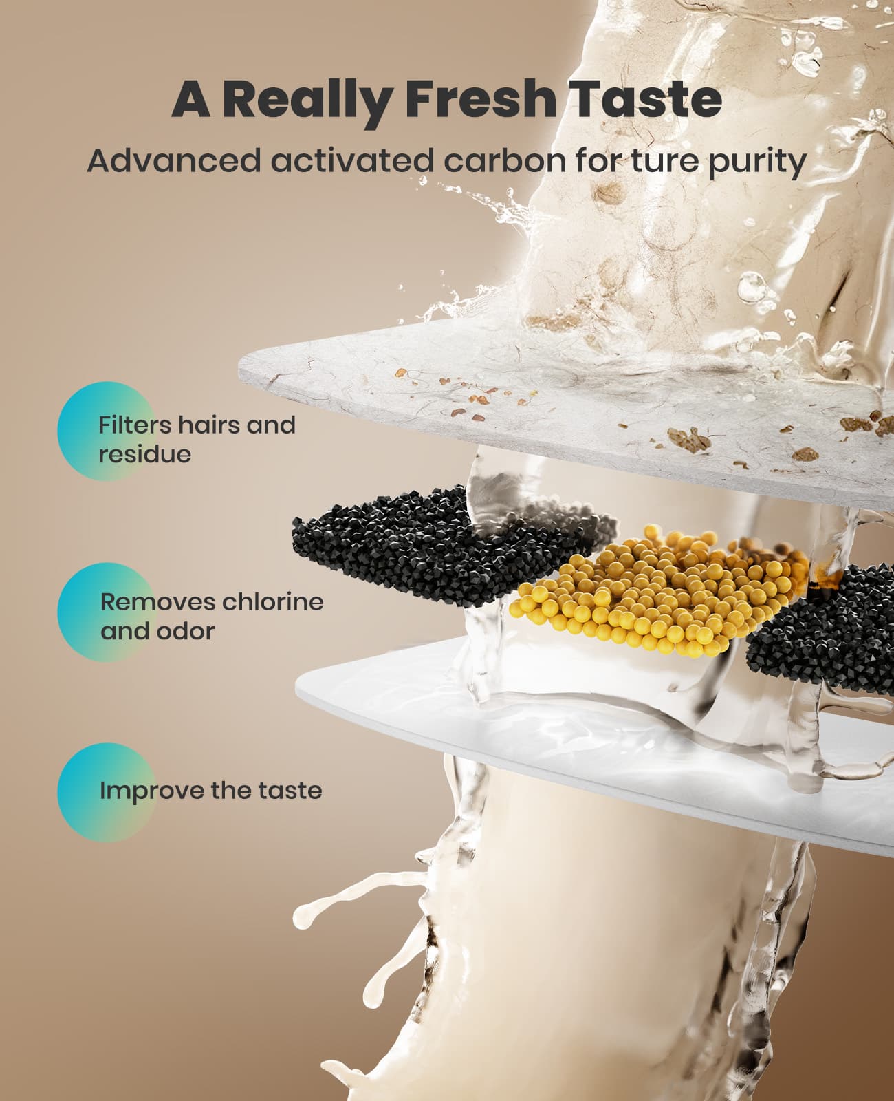Filters help remove impurities, hair, food particles, and other debris from the water, keeping it clean and safe for your pet. Many filters also have activated charcoal to help reduce odor and improve the taste of the water, which can encourage your pet to drink more.