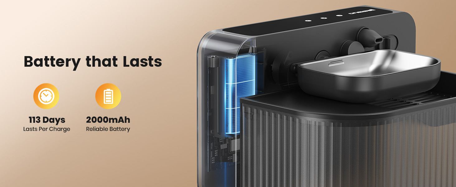 One full charge can last up to 113 days, depending on the drinking schedule and usage.
