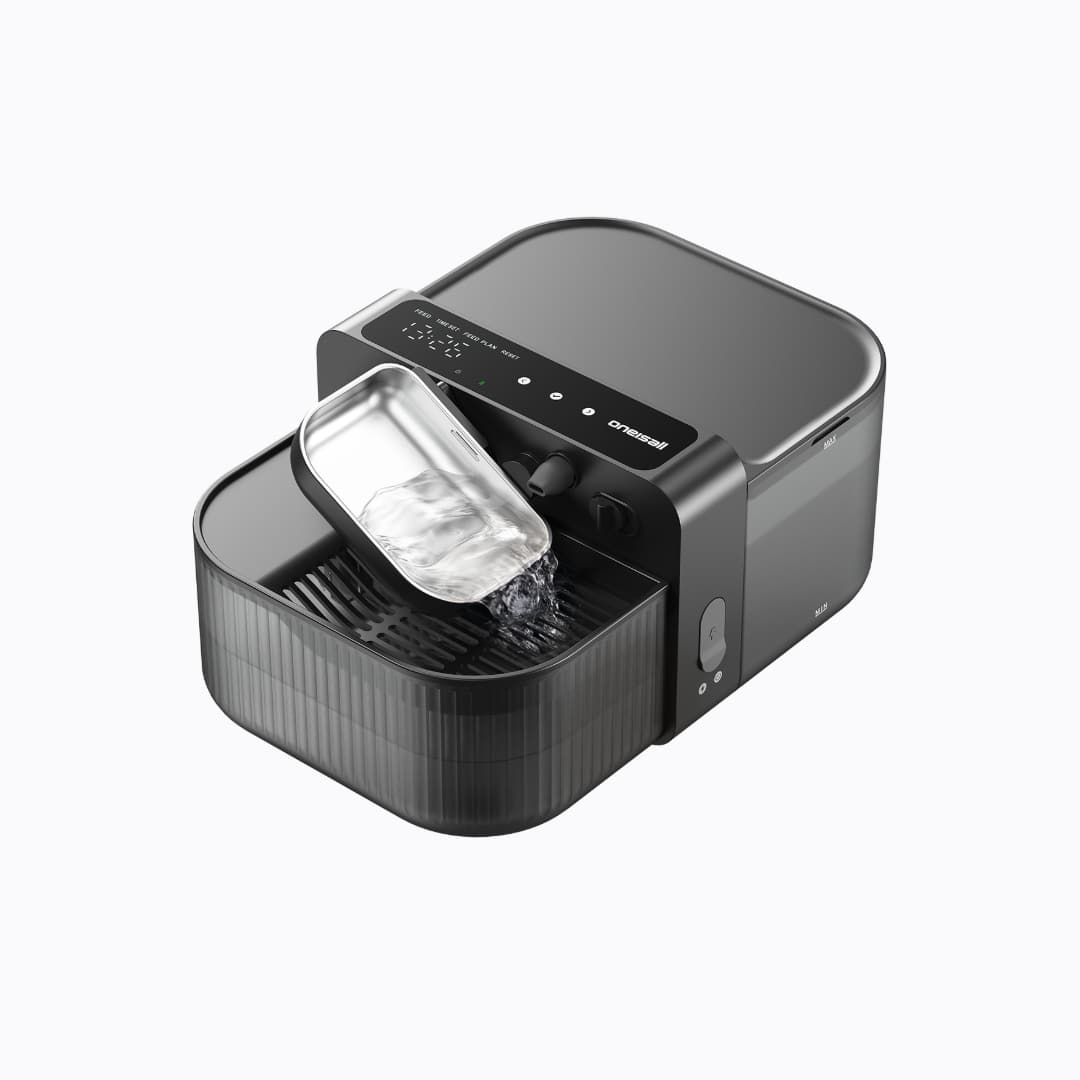 There is no pump or long tubing to take apart. Daily care usually only requires rinsing the stainless steel bowl, which takes just a few seconds.