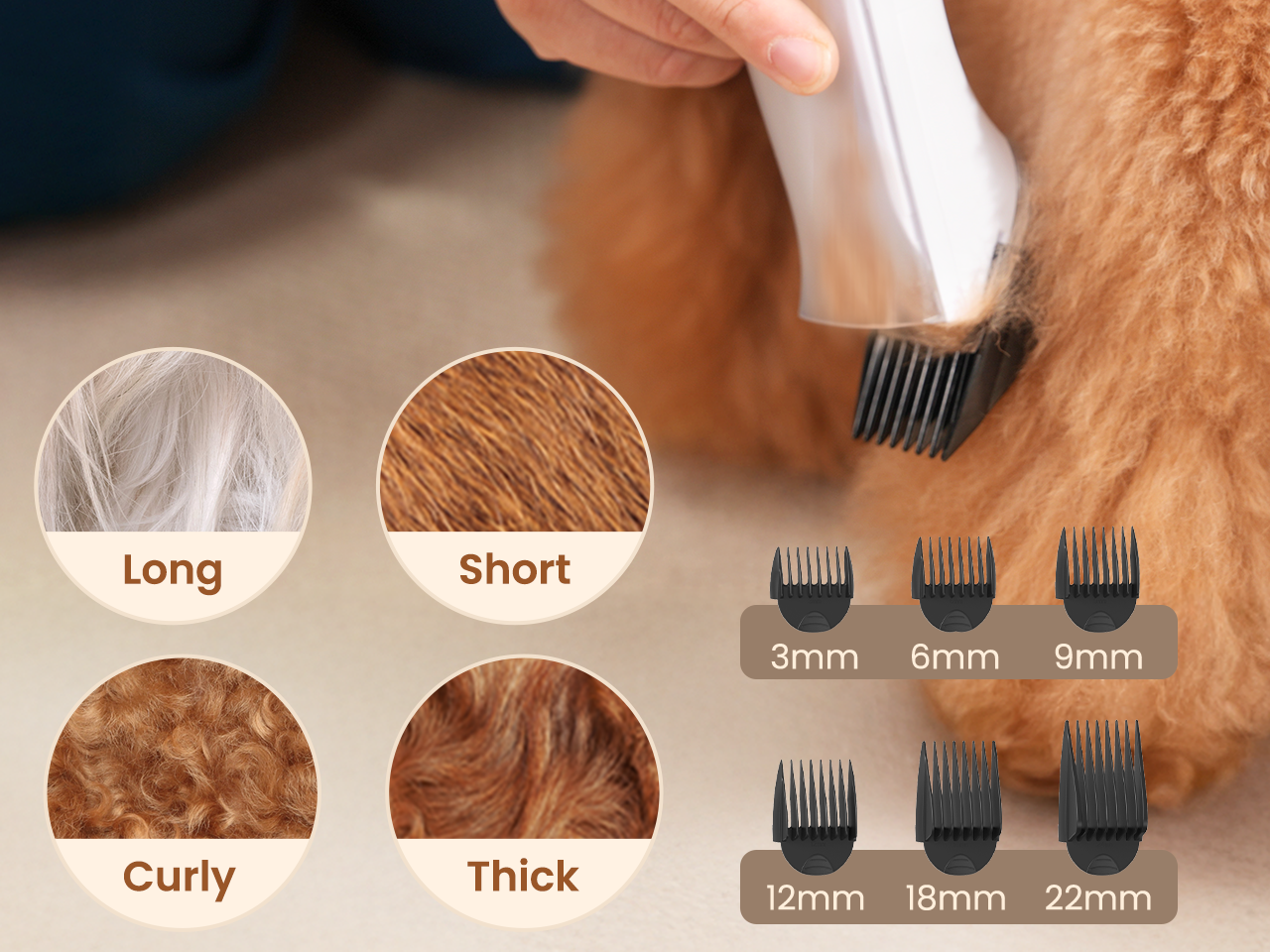 The noise of our pet grooming kits is less than 50db, it is a relatively soft sound level, similar to a calm office environment, or a low-volume televisionwhich which not scare pets.