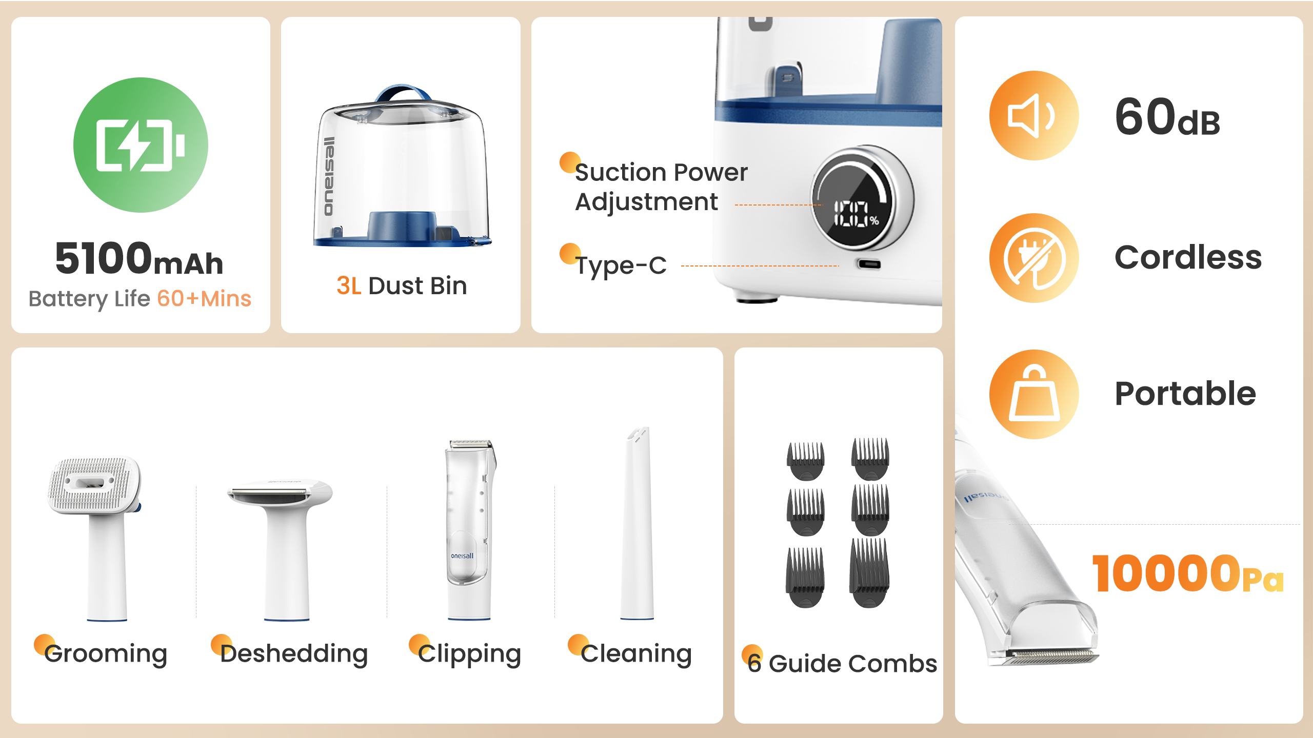 - Grooming Brush: Used to clean floating hair and dander, making the hair more healthy, shiny, and soft.