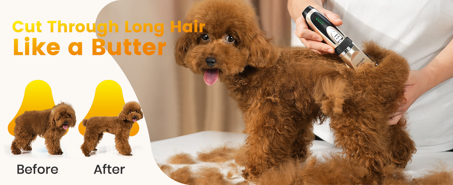 Yes, but you may need to adjust the blade size and guide combs on clippers for dogs based on each dog’s coat type and grooming requirements. For example, a thick coat may benefit from a wider, sharper blade, while a thin or fine coat may require a more precise blade for smoother trimming.